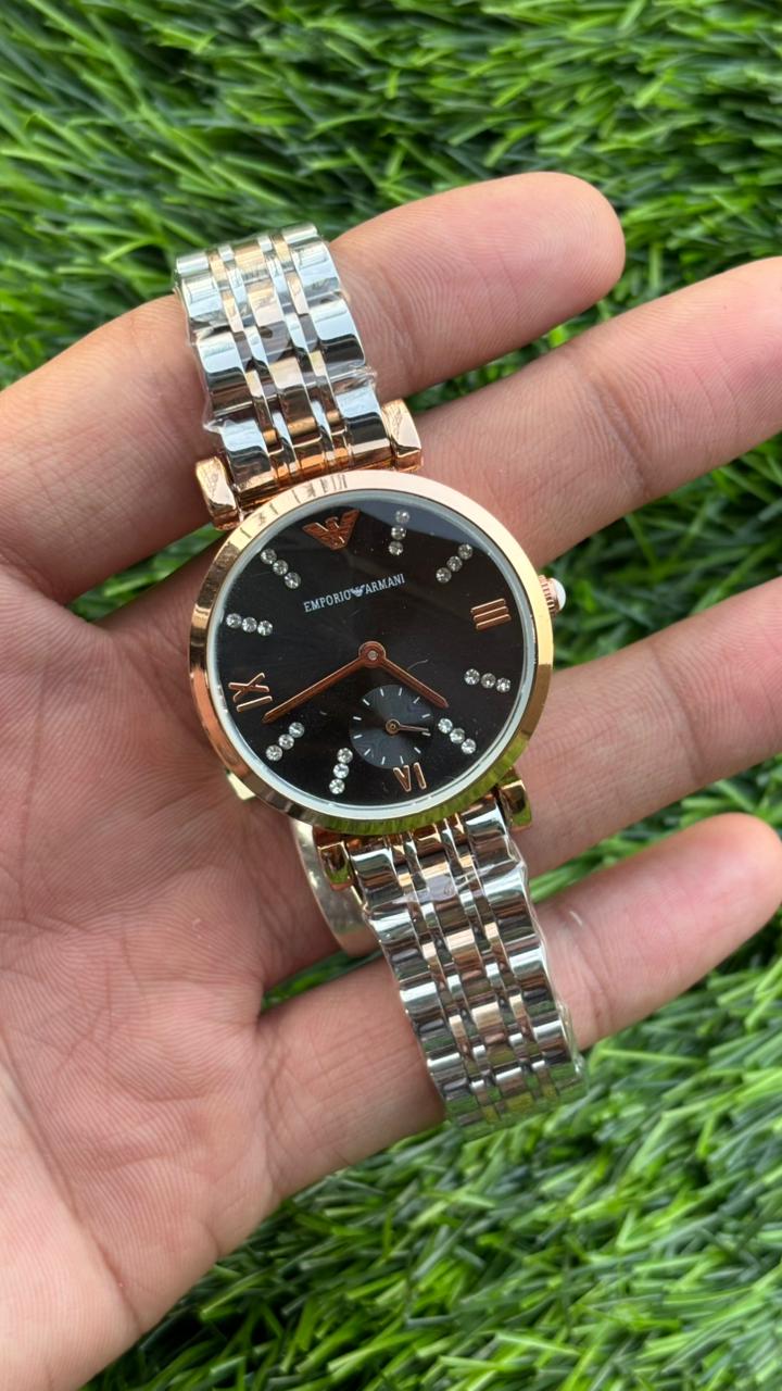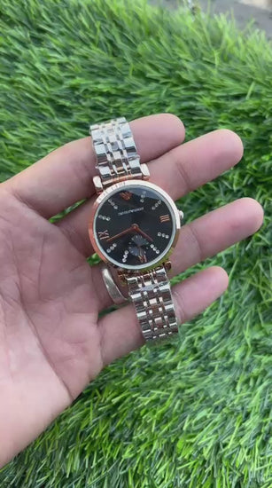 Emporio Armani Black Dial Chronograph Watch For Women's