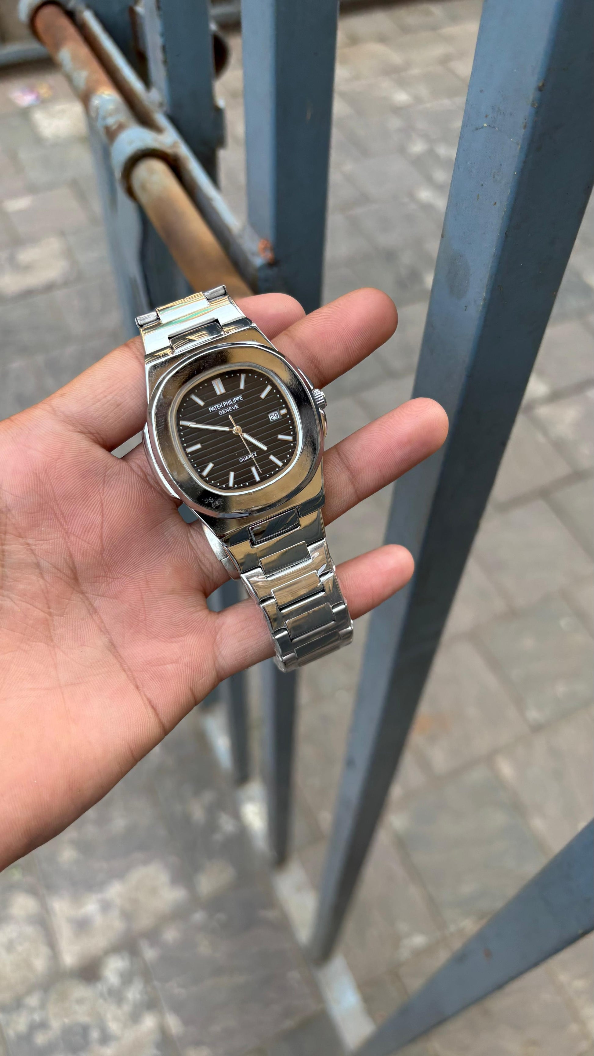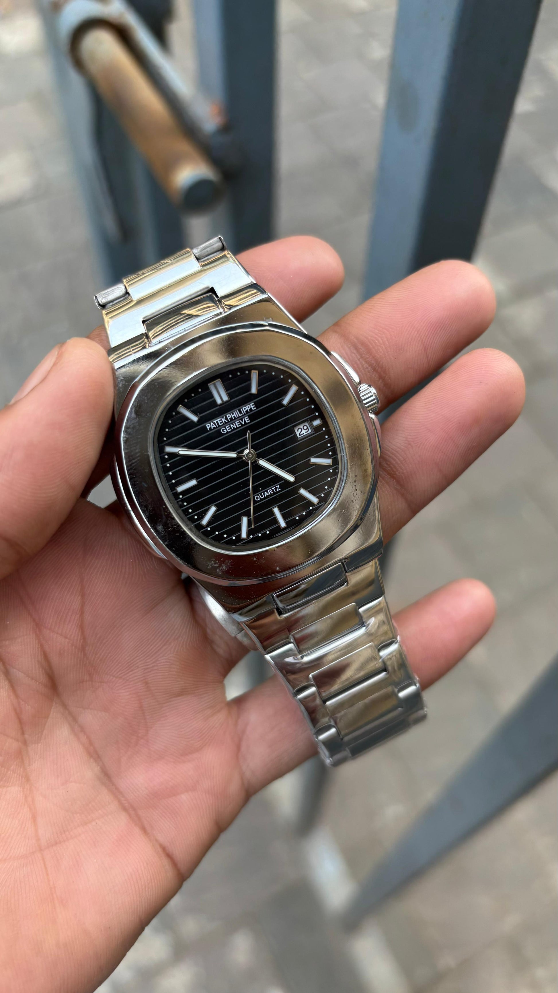 Patek Philippe Black Dial Silver Metal Belt Mens Watch