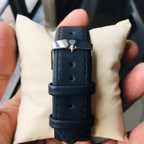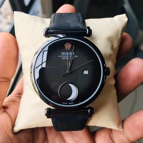 Rolex Moon Black Dial Analog Leather Watch For Women's